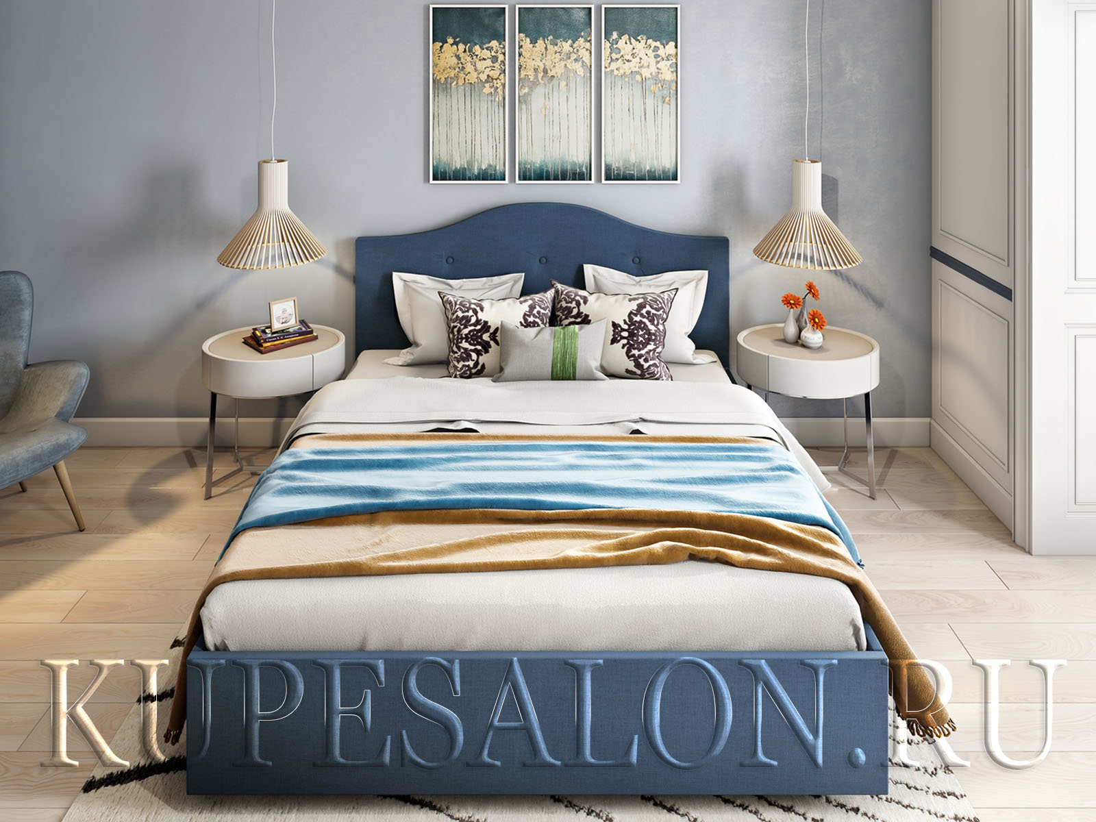 Дизайн Mira близок к модерну и минимализму. Несмотря на классическую форму и декоративные пуговицы изголовья, она смотрится актуально: дополненная ортопедическим матрасом, лаконичным покрывалом и миниатюрными столиками в духе 60-х, она сыграет первую скрипку в интерьере современной спальни.