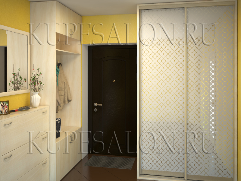 Шкаф купе «Иллюзия» создаст нежную и чарующую атмосферу в Вашей прихожей. Изысканный узор сатината играет радужными переливами. Он вместительный и многофункциональный. Вы сможете умело сочетать его с другой мебелью в прихожей, подобрав нужный тон изделий. А бесшумно скользящая дверь доставит одно лишь удовольствие от использования шкафа.